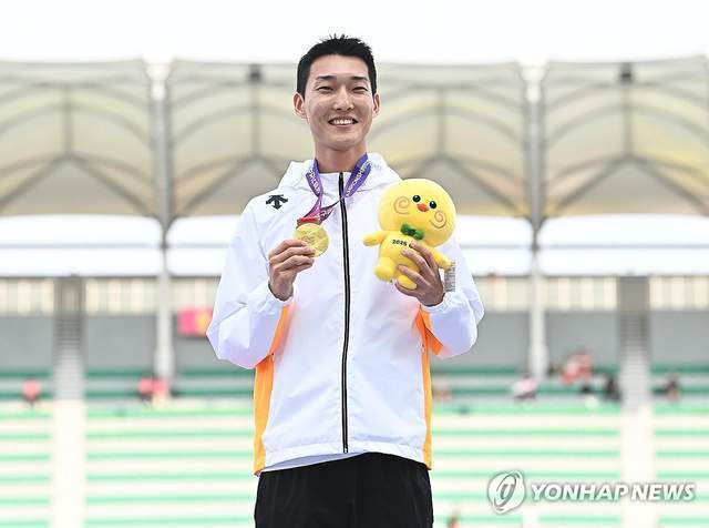 5月30日下午,29岁的禹相赫在庆北龟尾市民运动场举行的2025亚洲田径锦标赛男子跳高颁奖典礼上摘得金牌
